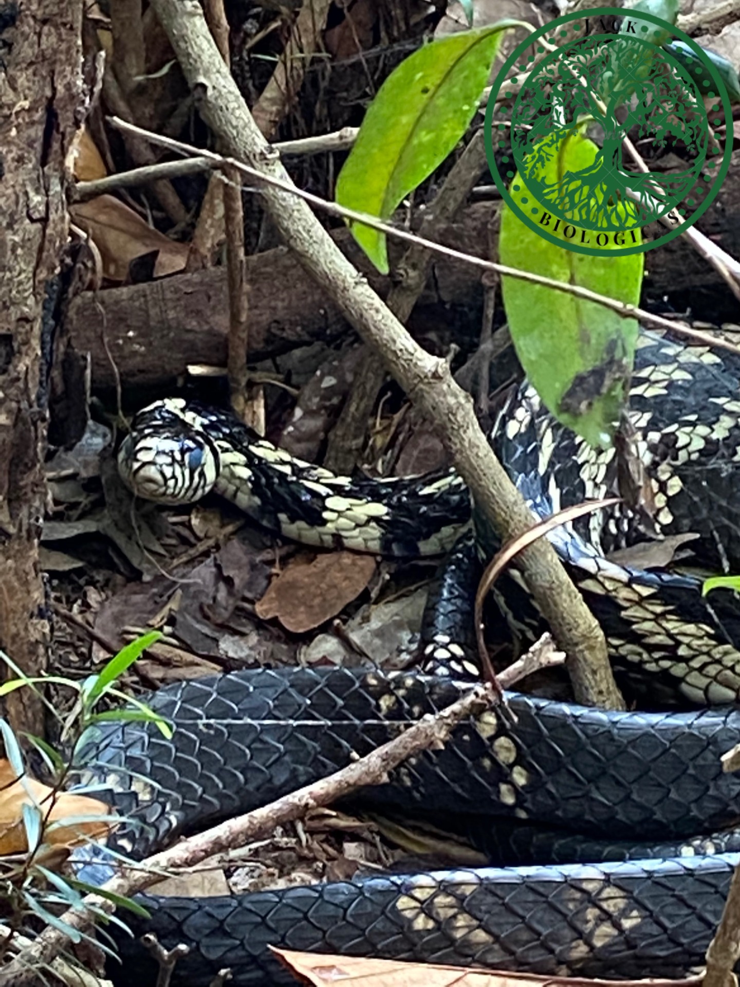 Quando essa espécie se sente ameaçada ela infla o pescoço e vibra a cauda para intimidar e enfrentar o possível predador. Além do eu tamanho exuberante de 2,5 metros, ela também impressiona por sua coloração que contrastante negro e amarelo.